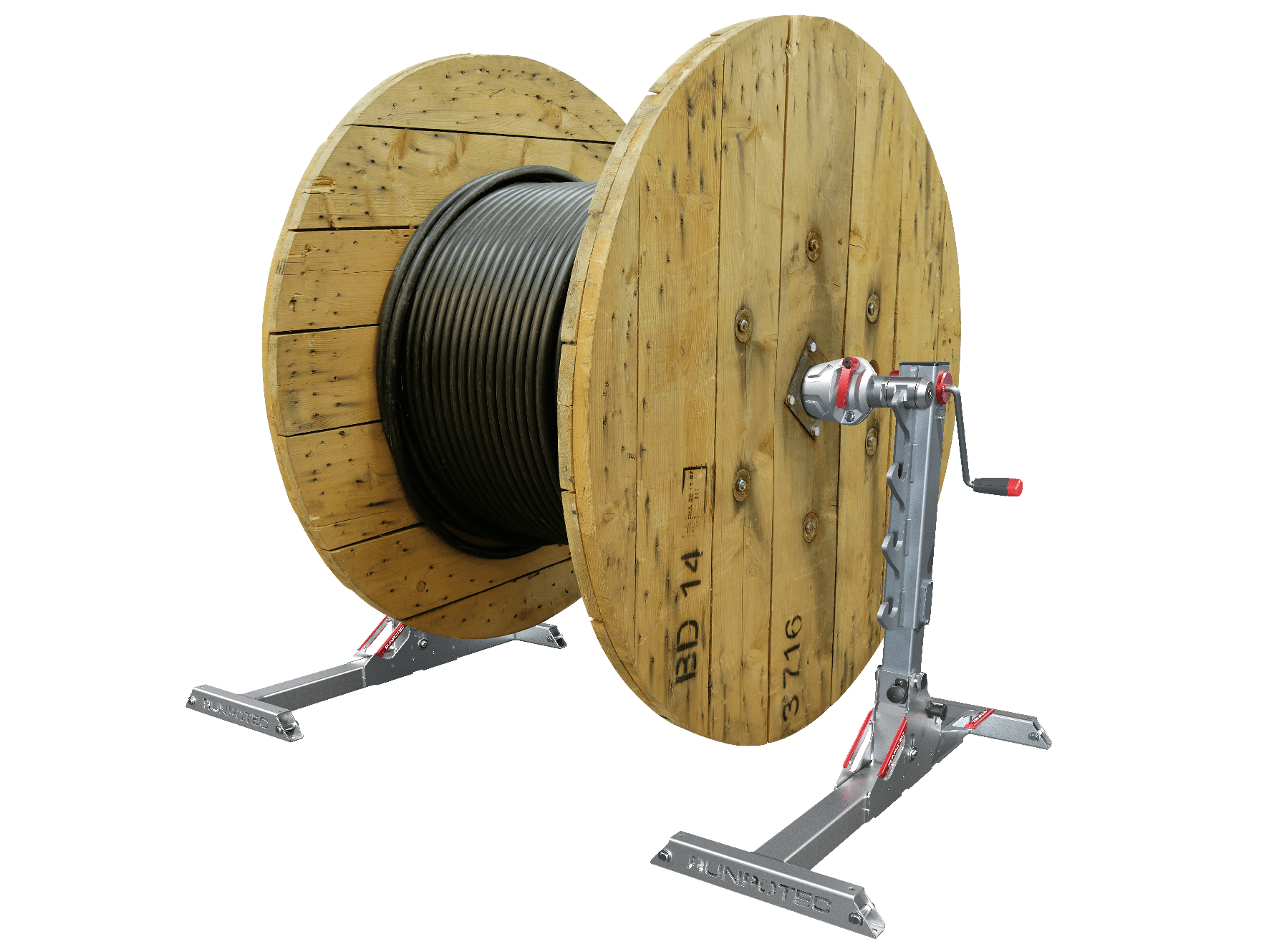 RUNPO Lifter 4500 este un dispozitiv de ridicare a tamburului cu cablu pliabil care este capabil să ridice tamburi cu un diametru maxim de 1600 mm și o greutate maximă de 4500 kg.