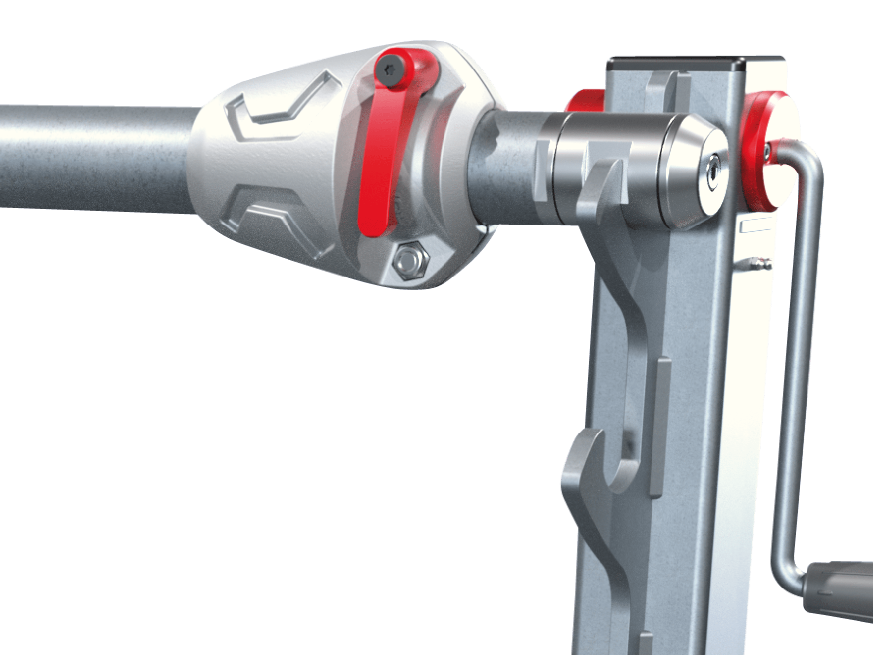 Arborele tamburului inclus are doi lagăre simple care permit rularea confortabilă a tamburului respectiv, fără probleme. Este inclus arborele tamburului de 1150 mm. Sunt disponibile și următoarele lungimi: 1350 mm sau 1600 mm. Cele două conuri de centrare incluse au fiecare un dispozitiv de fixare cu eliberare rapidă care permite fixarea rapidă și centrală a tamburului. Tobe cu max. diametrul interior de Ø 110 mm poate fi asigurat aici.
