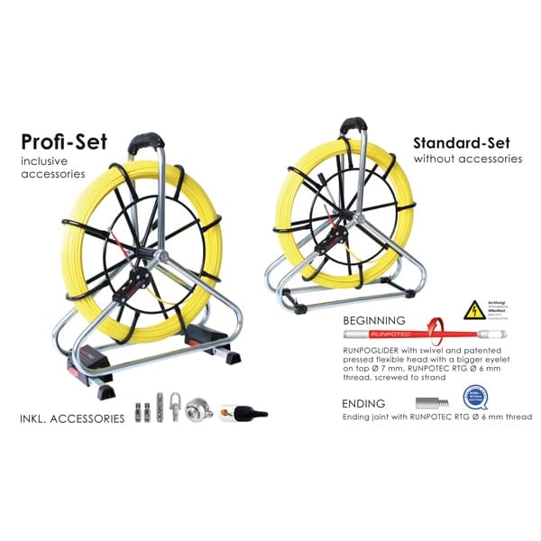 Set Profi tijă din fibră de sticlă Ø 6 mm – RUNPOTEC RTG Ø 6 mm filet cu cușcă robustă din oțel (zincat/acoperit cu pulbere) cu sistem nou, cu dublă ieșire (frână de rulare automată și ieșire rapidă), frână suplimentară de blocare, picioare în picioare extractibile și compartiment de depozitare pentru accesorii.
